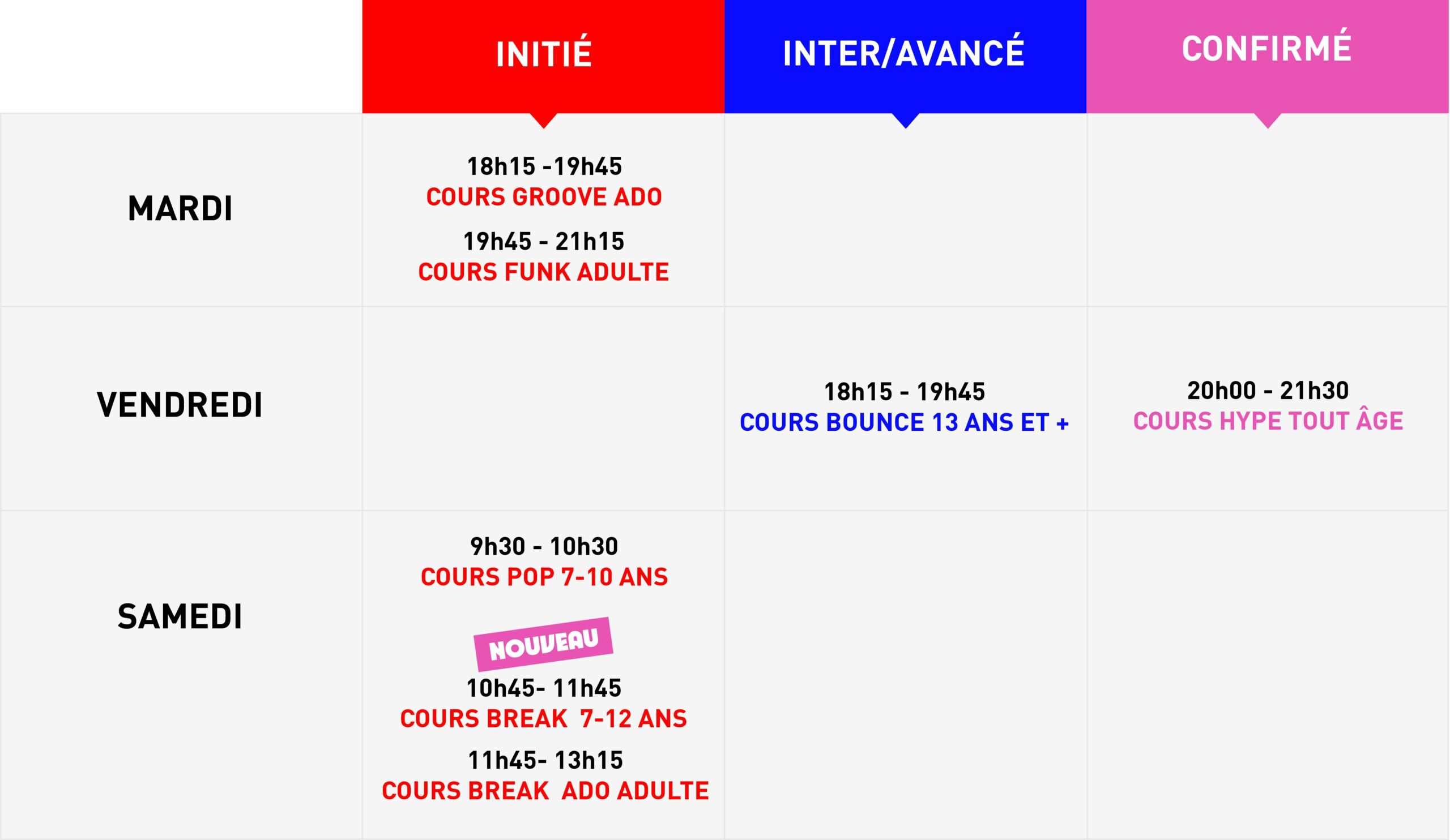 * Les cours Groove, Funk, Pop, Bounce, Hype se verront proposer une participation au Téléthon le 7 et 8 décembre 2024 et au festival NOUVEAUX REGARTS prévu